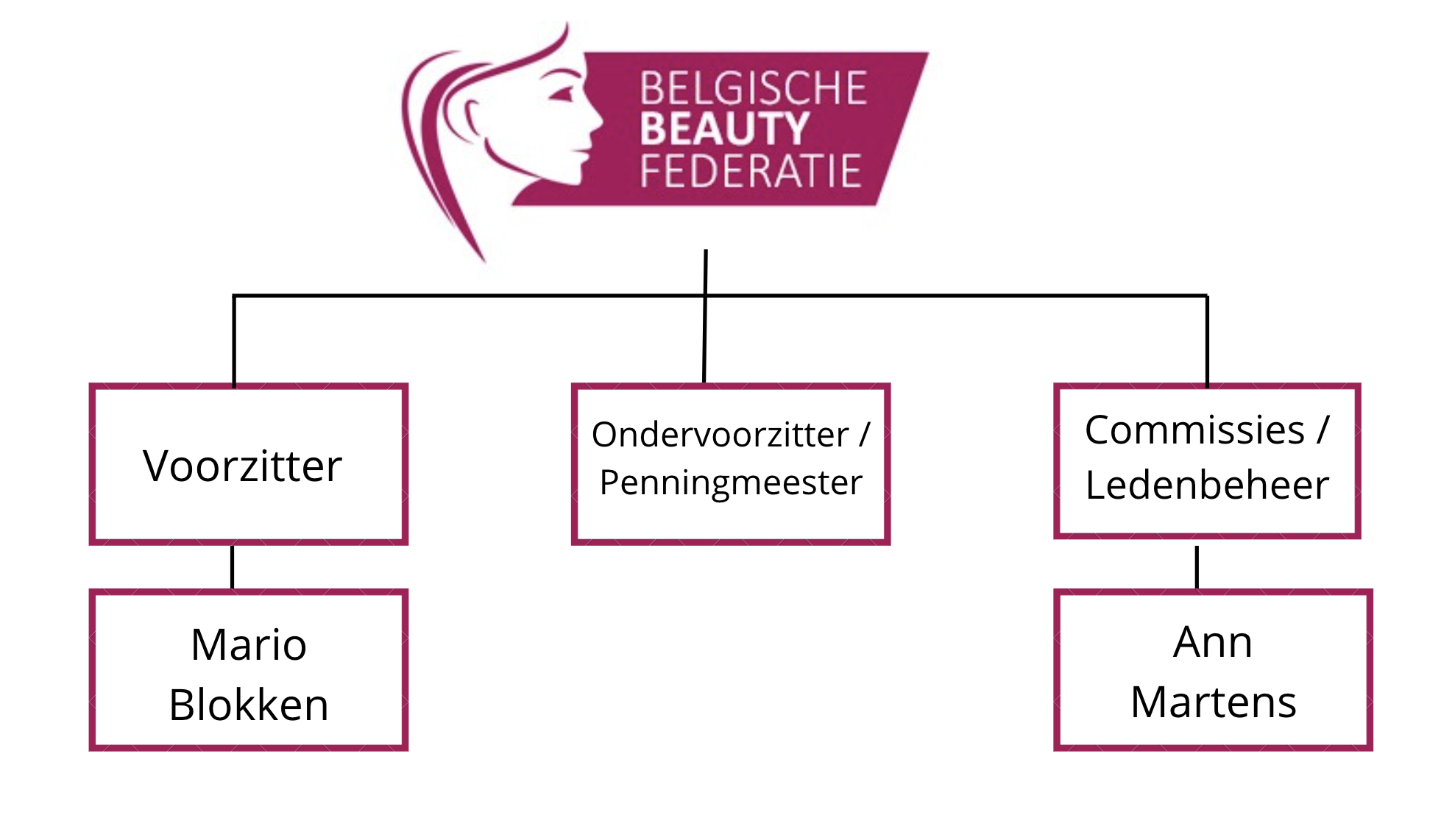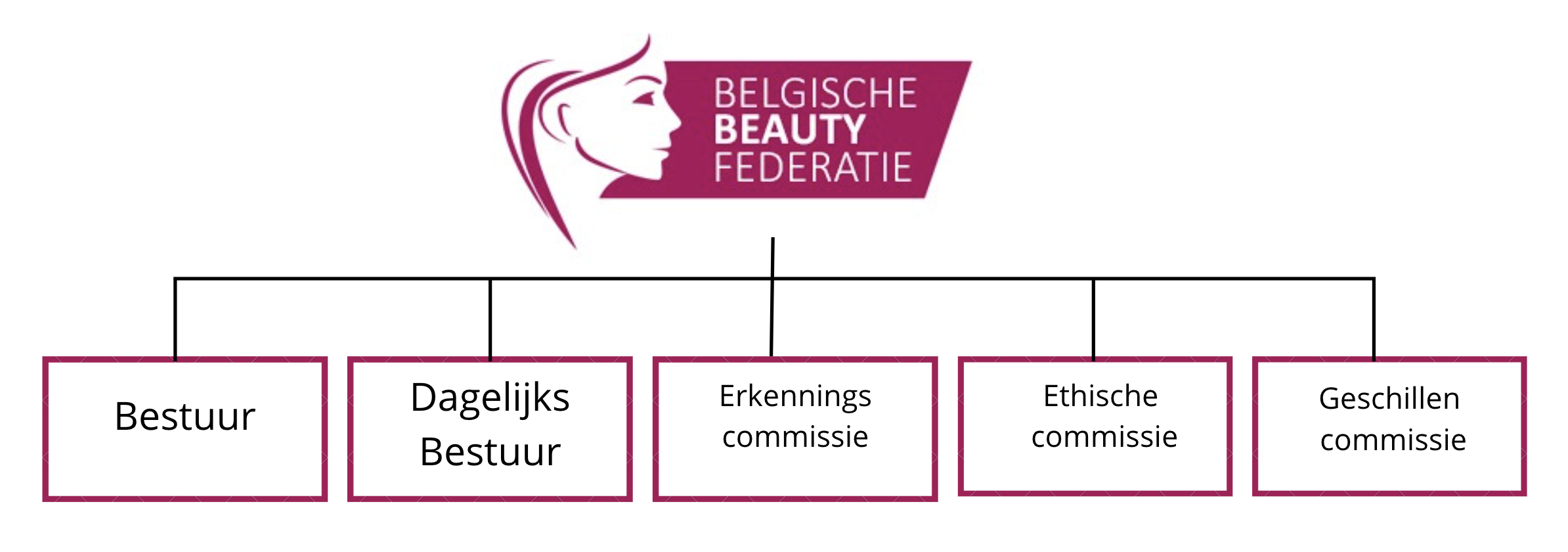 Belgische Beauty Federatie is een gezamenlijk project van BBF vzw en BFMS vzw en is hierdoor een wettelijk erkende beroepsorganisatie met een afgelijnde transparante structuur en beleid. Onderstaande organogram toont u de samenstelling van de substructuren: